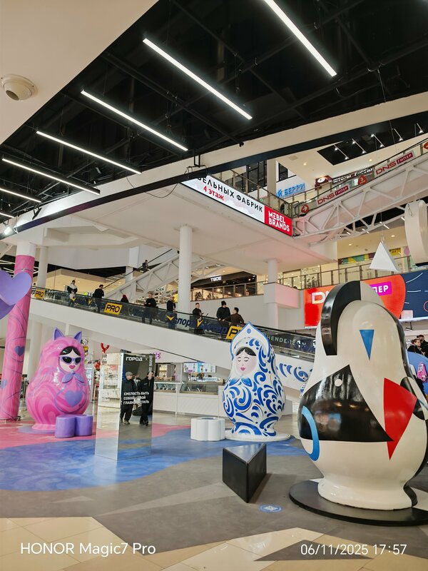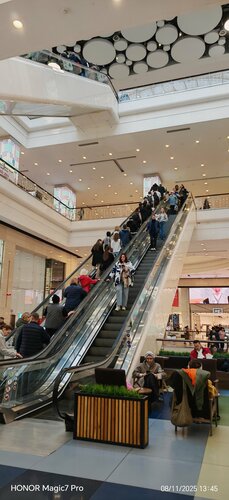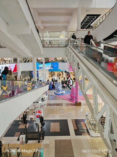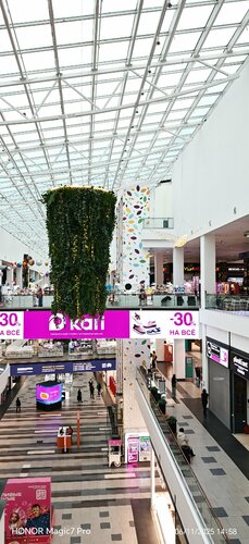 Большой торговый центр, каких сейчас в Москве много. На первом этаже большой Сбербанк. Удобная навигация, есть транспортные ленты, много лавочек с розетками для посетителей, можно бесплатно подзарядить телефон. Из неудобств - далеко от станции метро.