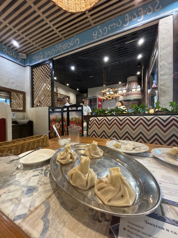 Хинкали сытные, вкусные, быстро и приятно обслуживают! Обстановка очень радушная.