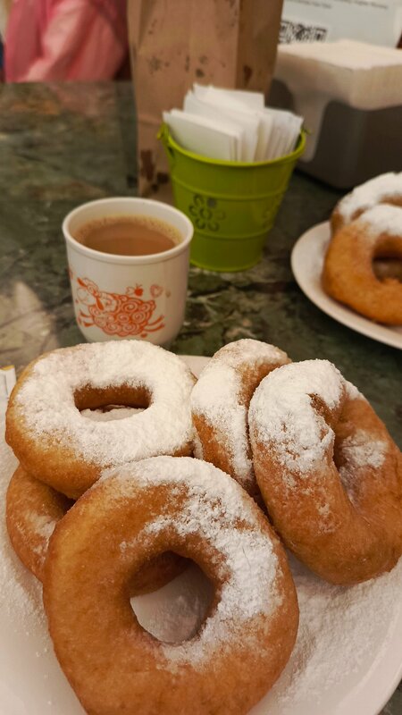Очень вкусные пышки и кофе со сгущенкой, вкус детства. Очередь всегда очень большая,но это того стоит. Рекомендую и советую посетить