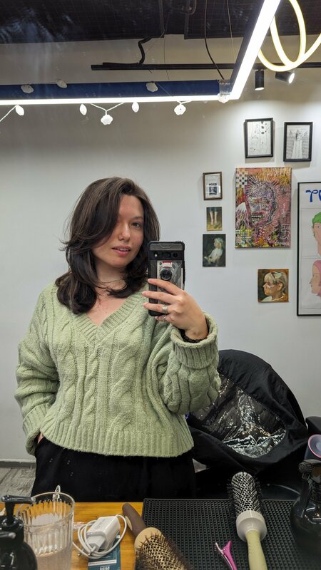 Классная студия! Ходила с длинными волосами долго и записалась на стрижку за час до:)) Меня стригла Алия, очень милая девушка. 1,5 часа чистой медитации можно сказать. И музыка тут играет прекрасная. А стрижка вообще отпадная получилась