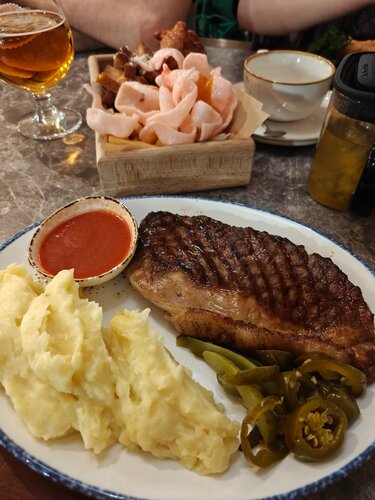 Посетили ресторан «Евразия» и остались в полном восторге! Обслуживание на высоте: официант был внимателен, подробно рассказал о блюдах и помог с выбором. Атмосфера уютная, интерьер стильный — приятно проводить время. Теперь о главном — о еде! Попробовали сразу несколько позиций, и каждое блюдо поразило своим вкусом: Суши — свежие, нежные, идеально выверен баланс риса и начинки. Чувствуется качество продуктов. Стейк — приготовлен безупречно: сочная мякоть, идеальная прожарка, насыщенный мясной вкус. Подавался с гармоничным гарниром. Том ям с морепродуктами — настоящий взрыв вкусов! Острый, ароматный, с богатым бульоном и щедрым количеством свежих морепродуктов. Всё как положено в хорошем том яме. Грибной крем‑суп — нежный, бархатистый, с выраженным грибным ароматом. Крем‑текстура идеальная, без комочков. Гренки подавались отдельно — удобно и аппетитно. Снэк‑набор — отличная закуска для компании. Разнообразие вкусов и текстур, всё хрустящее, горячее, с пикантными соусами. Салат с индейкой — лёгкий, свежий, с продуманной комбинацией ингредиентов. Индейка нежная, овощи хрустящие, заправка в меру пикантная. Куриный шницель — золотистая корочка, сочное мясо внутри. Подавался с классическим гарниром, который отлично дополнял основное блюдо. Порции адекватные, блюда подаются красиво, чувствуется внимание к деталям. Цены соответствуют качеству, а уровень сервиса делает визит по‑настоящему приятным. Обязательно вернёмся в «Евразию» и будем рекомендовать друзьям! Огромное спасибо команде за отличный вечер. Оценка: 5 из 5