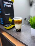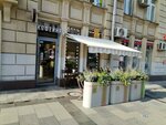 Самый обычный кафетерий на бойком месте.Народу забегает многовато,все столики заняты.Брали кофе латте с карамельным сиропом, девушка нам делала...рисунка сверху нет,хорошо хоть в керамических чашках...вкус так себе, а вот круассаны понравились.