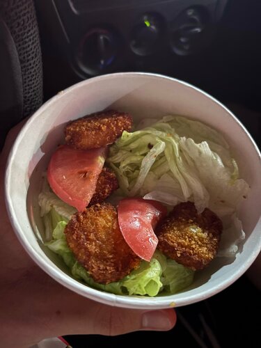 Заказал салат цезарь, что в описании что на фотографии заказа видно что там помидоры чери но положили 2 отгрызка помидора который пролежал 2 дня Так же раньше можно было заказывать через окошко для автомобилей но его загородили Не оправдано высокие цены за очень плохое и маленькое количество еды