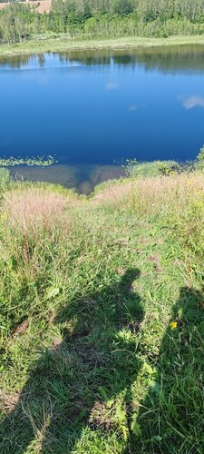 Это не пляж, а подход к воде. Не уверена, что местные тут купаются. Спуск очень крутой, есть земляные ступеньки. Дети 5 и 8 лет прекрасно преодолел спуск и подьем. Подниматься значительно тяжелее, высоко и неудобно, смотрите на свою физ подготовку. Пожилым не рекомендую. Дно каменное, много тины, вода холодная, но в жару это было плюсом. Рядом спокойно плавают лебеди. Туалета нет - он в изборской крепости, поэтому не выбрасывайте билет Кабинок для переодевания нет - есть одна у источников. Там кстати то же можно искупаться, но много народу и хлеба/булки плавает рядом. Ими кормят лебедей.