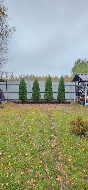 Всем добрый день! Искали в октябре высокие туи Смарагд 240-260 см. Муж не хотел ждать до старости пока вырастут маленькие 😁 Звонила многим питомникам. Искала. То таких высоких уже не было, то количества не было, то очень дорого. В общем, то одно,то другое. И вот попался в интернете этот питомник. Вежлевый Михаил мне всё подробно рассказал, рассчитал. Договорились быстро в пятницу, перевела предоплату и вот в воскресенье прекрасные туи уже красуются у нас на участке. Такие огромные! Некоторые даже 280см (отдельное спасибо Михаилу). В общем я рада и думаю,что это наше не последнее сотрудничество!)))) (Сажали не сами. Работники от Питомника)