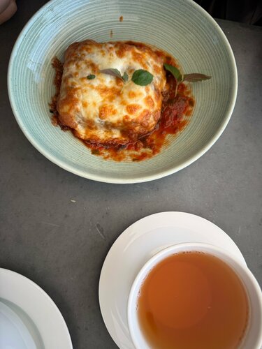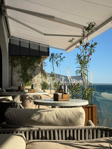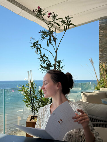 Выбирали между несколькими панорамными ресторанами и не прогадали. Ресторан Националь понравился интерьером, большим количеством зелени, богатой винной картой, которая хорошо сочетается с блюдами из меню и при желании даже с десертной картой. Мы с супругом попробовали мидии в сливочном соусе, лазанью и жюльен с морепродуктами ( это блюдо отметила официант и мы тоже в него влюбились), салата моего не оказалось, поэтому выбор пал на десерт Анна Павлова. Я не сильно люблю сладкое, а этот десерт был просто замечательным, в нем сочеталась не притворная сладость с кремом чиз и кисленьким топпингом-вареньем. Стоит отметить потрясающие виды на море и набережную, романтично пролетающих чаек на уровне твоего зрения и бесконечный горизонт. На террасе довольно тепло даже в прохладный день.