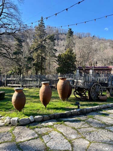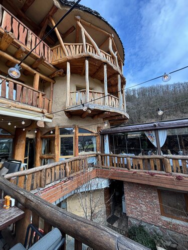 Случайно наткнулись на это место по пути на Агурские водопады: там же и большая парковка и начало пешеходного маршрута. Как будете подъезжать, увидите пункт кпп о въезде в заповедник, там можно сказать, что вы в ресторан и вас пустят бесплатно!Мы были в межсезонье (в Феврале) и туристов не было, но думаю летом тут толпы и привозят большие автобусы! Нас пустили с собачкой посидеть на солнечной террасе, мы наелись от души и насладились атмосферой! Рекомендую попробовать малиновый лимонад, хачапури-лодочку и всякие кавказские закусочки 👍🏼