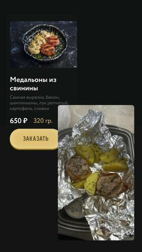 Если хотите испортить ужин , то вам конечно сюда В чудо заведение !!!! 4 заказанных блюда и съедена только шаурма , цена вопроса 2300 Поке -есть не возможно , рыба безвкусная горбуша серого цвета , рис отвратительный , вид прям ..…. (Зацените фото ) Медальоны из свинины ожидание /реальность см фото , свинина вонючая ,картошка как вода Жульен из грибов (служба доставки еды на минуточку ) выглядит просто как массы г..…. Отбивает все желание кушать ( Зато пакет Ресторана Москва