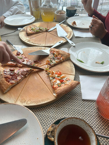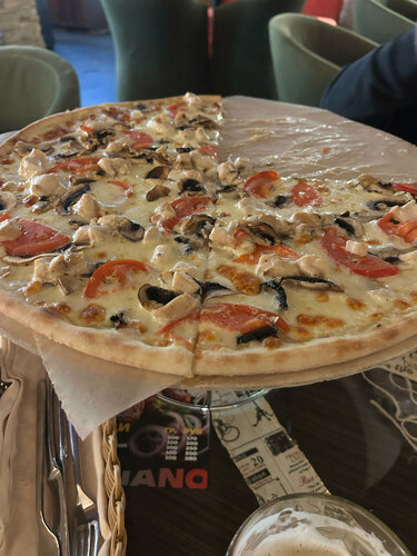 Отличная пиццерия, очень красивый интерьер, немного народу, вкусная пицца и чай, есть оплата картой. Правда попросили установить приложение, тип туда придут бонусы но чет пока ноль бонусов.