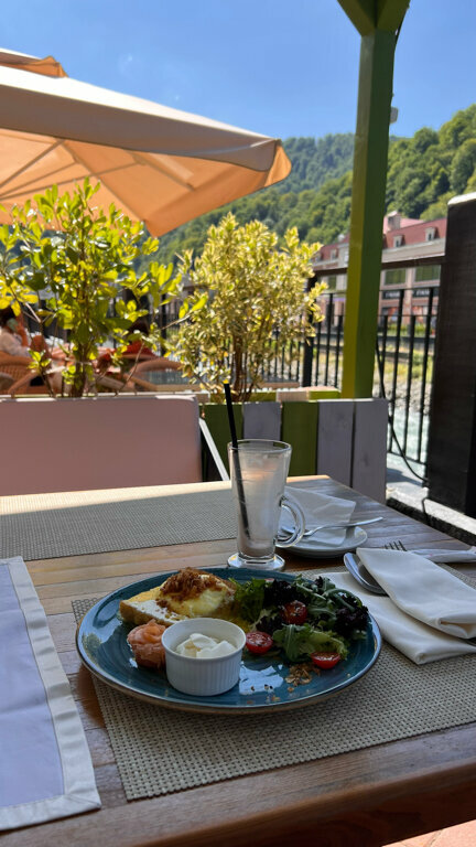 Остановились в Азимут фристайл, завтрак в бронь не включили, а спустились позавтракать в кафе руккола, которое находится при отеле. Всё очень понравилось, еда вкусная, персонал очень вежливый и отзывчивый, спасибо большое официанту Веронике, прекрасная подача и настроение на день ❤️☕️ и очень вкусный какао 🥰 благодарю