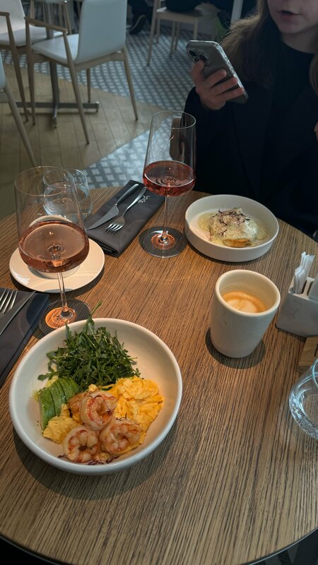 Вкусные завтраки, много вариантов для людей, которые сидят на диете или имеют ограничения на продукты. Угощают не только алкогольным, но и безалкогольным шампанским , приятно для водителей! Чисто, светло нет ощущения толкучки из-за расположения столиков.