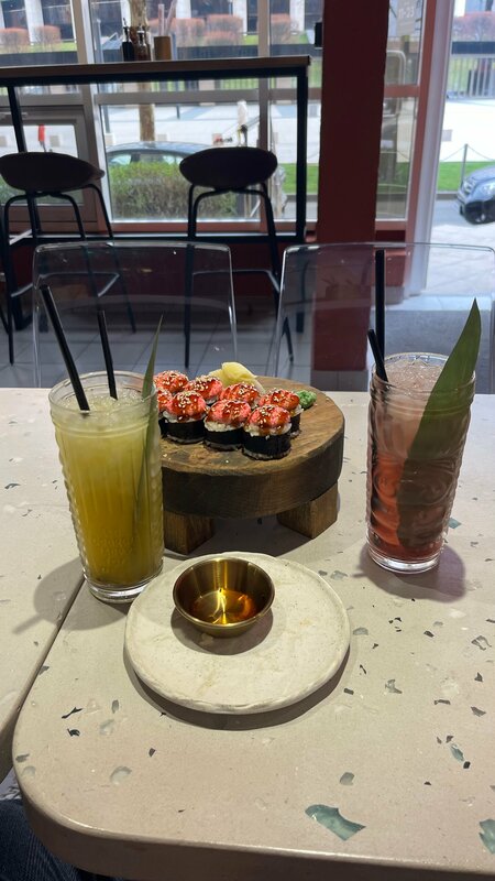 Скажу сразу, подача мне очень понравилась. Заказывал Том Ям, онигири, роллы. В принципе всё отлично, но есть одно но, в супе том ям, были обычные нарезанные помидоры. Но подача, всё сгладила. Зона для посетителей не большая. Заведение хорошее, чисто, аккуратно. 👍😉