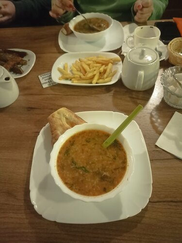На безрыбье, как говорится..... Довелось нам побывать в данном заведении во время вечерней прогулки по новогоднему Минску. Большую нашу компанию никто в радиусе 1 км от Октябрьской накормить не хотел, поэтому на подвернувшийся вариант хинкальни согласились сразу. Атмосфера - первая звезда Скорость подачи - вторая звезда Работа персонала - третья звезда На этом, к сожалению, всё. Хинкали сухие без бульона внутри, в харчо ни риса ни мяса, хачапури по-аджарски - это прям батон из фильма "Девчата" но на очень пышном дрожжевом тесте. Долма пересушена. В общем, будучи голодным, можно не заметить чем набиваешь рот - сойдёт. Но если пришёл вкусить кавказской кухни, то это извините, не сюда.