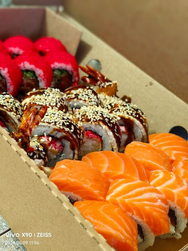 Роллы просто невероятные 😍😍😍 заказываем уже около 3х месяцев, Пока нареканий нет! Начиная с приложения ,в котором всё понятно и легко сделать заказ. Готовят быстро, дольше 1 часа никогда не ждали, привозят всё в лучшем виде, сами роллы невероятно красивые 😍😍 вкус просто 10 из 10! Наисвежайшая рыба, нежная!! Прям вкус который должен быть у роллов!! Мои гости были в приятном шоке от их размеров и потрясающего вкуса!!! Я всем рекомендую!!