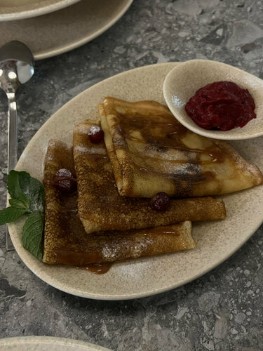 посетили это заведение по пути в Сочи и очень удивились, что внутри это красивейший ресторан с дизайнерским ремонтом, а еда еще лучше! заказали картошку фри, блинчики с клюквой, пельмени и грибной крем-суп, всё невероятно вкусное и красивое, а цены приемлемые для такого заведения🫶🏻 ВСЕМ СОВЕТУЮ!!!