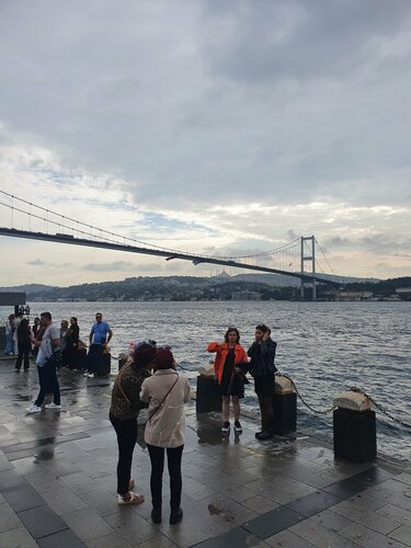 Удобно добраться на катере общественного транспорта, прекрасный вид на мост между Европой и Азией. Мост впечатляет. Рядом диковенный бащар салатов. На видео. Нигде в Стамбуле больше такого не видели. С