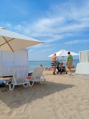 Отличный пляж с великолепным песком. Дно ровное, без камней, но до глубины вам придется долго добираться. Идеальное место для детей! Нравится как с годами в лучшую сторону меняется инфраструктура пляжа: обновления коснулись теневой зоны, зонтов и пр. За 50 руб в день с человека для вас душ, туалет, раздевалки, ногомойник. Есть кафе и магазинчик со всем необходимым. Все с удовольствием приезжаем сюда!