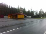 Только за наличку. Желающих заправиться мало. Баллон на 50 литров заправили быстро за 1400 рублей. Находится метрах в 150 от шоссе.