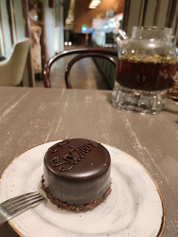 Очень симпатичное заведение, правда, в полуподвальном помещении, но на уют и комфорт это никак не влияет. Пирожное "Захер" просто вкуснятина, получила настоящее шоколадное удовольствие, а там вообще большой выбор сладостей, будем ходить почаще и пробовать, пробовать,пробовать!!!