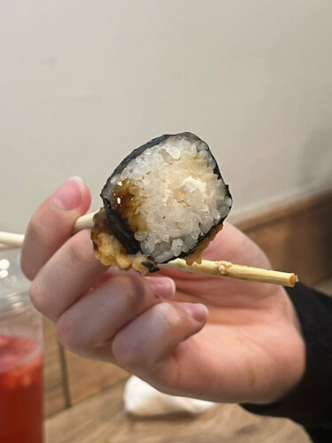 Это ужас! Нашли место по рекомендациям тик тока, лимонад лайм и клубника отстой, лайма нет, клубнику замороженую бросили и сиропом полили. Изи твист картошка сырая. Роллы что с лососем, что с креветкой на фото показано что это за нечто. Корн дог более менее, но места знаю по вкуснее