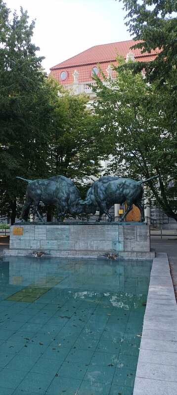 Анималистически правильная скульптура Августа Гауля. О её символизме, историческом и культурном значении расскажут на каждой обзорной экскурсии. А также добавят городских легенд и баек. Кроме всех прочих значений и того, что скульптура действительно очень красивая, являет собой также прекрасный топографический ориентир. "У быков" - и всем понятно, где вы.