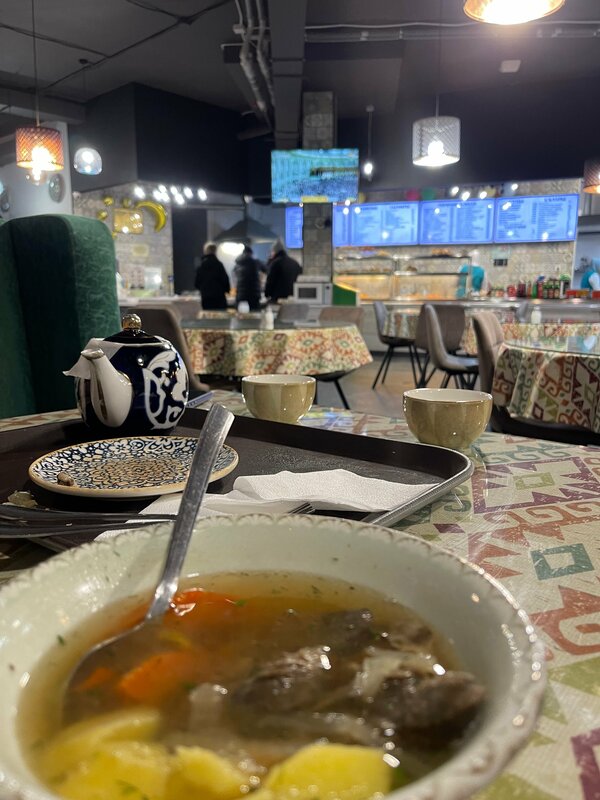 Рядом со входом в ЖМ, дверь в это мусульманское кафе. И прошел бы я мимо, если бы не увидел что там современная открытая кухня, есть нормальный кофе, ну и выглядит всё как-то чинно, солидно. Попробовал я единственное подходящее блюдо мне на завтрак «Миш Маш» , овощная зажарка с томатом, и двумя яйцами пашот. Понятная,классическая средне -азиатская овощная зажарка ,два хорошо приготовленных яйца пашот,пару ломтиков лепёшки. Пил эспрессо,кофе хороший,водичку подали без напоминаний! Меня всегда радует когда национальные кухни выходят из своих подвалов и ларьков, делают что-то новое современное , ведь еда Средней Азии большинству Россиян понятна, любима, но в основном всех пугает обстановка, и те условия в которых готовят. В этом заведении все прекрасно, но! Есть ощущения что немного « колхоза» всё-таки присутствует, это заметно конечно не каждому, но будучи шеф-поваром с огромным стажем ,сразу увидел некоторые нюансы. Организация рабочего пространства и процессов, выборы названия блюд, выбор посуды которая красива,но не очень удобна, хотя бы для того блюда которое я ел. В общем сервис дело тонкое, и там много нюансов, готовить вкусно в нашем современном обществе уже мало, а сервис решает! Желаю ребятам развиваться, развиваться, учиться, учиться!