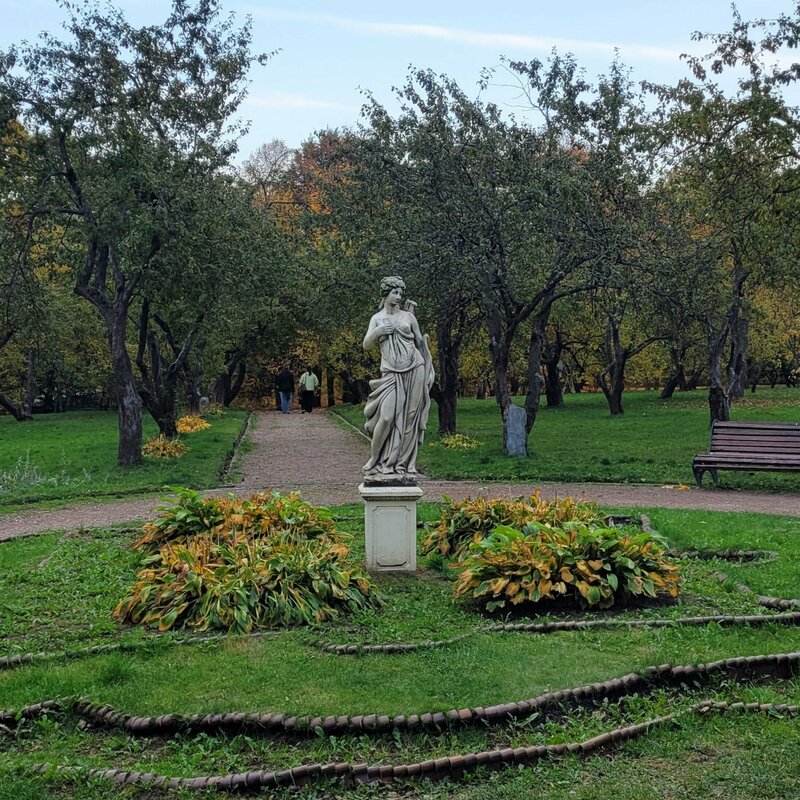 Вдохновилась скульптурой и решила немного поискать информации🙃. Диана в римской мифологии и Артемида в греческой — это богиня, которая олицетворяет не только охоту, животных и растения, но и женственность, целомудрие и плодородие. Она благоволит росту трав, цветов и деревьев, благословляет рождение, свадьбы и браки. Ее брат-близнец Аполлон - бог света, в то время как саму Диану часто отождествляют с богиней луны Селеной. Вот такие разные ипостаси. Однако не просто она тут стоит в яблоневом саду)