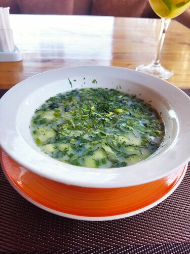 Хорошее заведение. Сразу сказали ожидание 30 минут, но по факту за 20 минут всё было готово. Персонал хороший. Окрошка вкусная, но многовато зелени и порция небольшая. Пирог с сыром очень вкусный, тут без вопросов. Хинкали тоже достойные, тесто плотное не рвётся. Рекомендую!!!