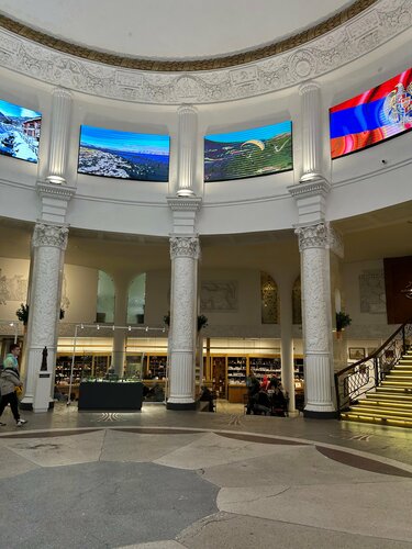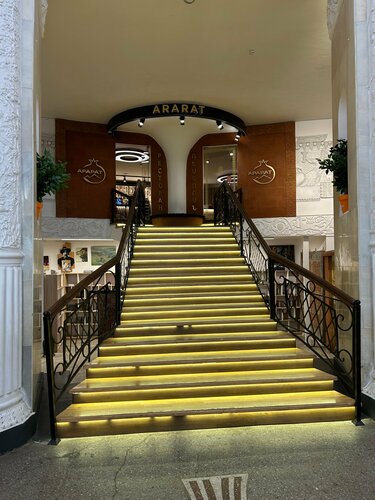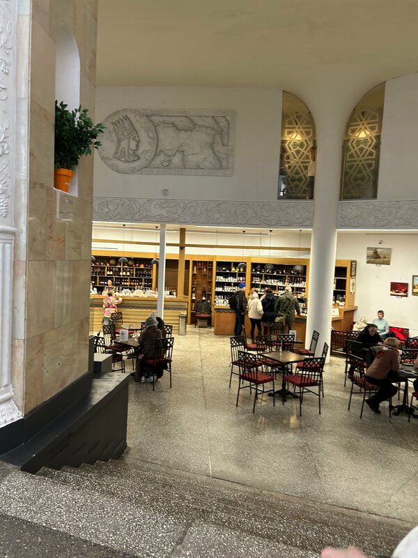 Прекрасно отреставрирован, в фойе макеты знаменитых монастырей армянской земли, кафе, магазин, сувениры, можно купить армянского вина и продегустировать его на месте перед покупкой, серебро столовое и украшения, магазин продукты и конечно ресторан Арарат, который мы посетили. Блюда не фотографировали, но нам понравилось, салат с жареными баклажанами , хачапури по аджарски, тжвжик, вкусно и сытно.Понимаю что армянский ресторан не про пиво, но разливное только Шпатен, в бутылках есть армянское.кстати есть бизнес/обеды по 650 руб и очень достойные, в основном их все и заказывали, в среду это был цезарь, харчо, шашлык с картофелем и компот, матнакаш. Порции вполне достойные. Проголодаетесь, смело идите в павильон Армения в ресторан!
