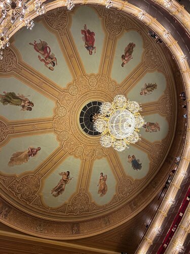 Гастроли Мариинки в Большом, опера Верди Симон Бокканегро, у меня был 8 ряд, место 30, неплохой подъем, видно и слышно прекрасно, спектакль дневной.Давно не была в Большом, после реконструкции очень удобные лифты, большие буфеты, но жюльенов уже не подают. Зашла посмотреть сцену с последнего яруса, очень высоко, видно плохо и историческая люстра мешает. На моем месте было не жарко, даже прохладно,кондиционеры и вентиляция не плохо работают.