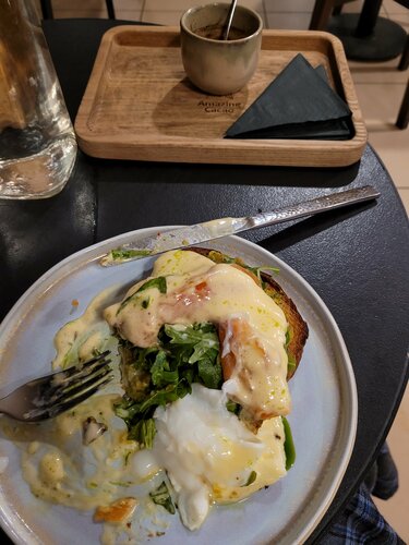 Набрела на это сказочное местечко случайно и теперь это одно из любимых моих мест в Санк-Петербурге) Такого качественного горячего шоколада я ооочень давно не пробовала, а там его десятки видов! Такого гастрономического экстаза от вкусовых рецепторов я не ожидала в принципе, а разнообразие текстур, добавок, вкусовых оттенков и плотностей выше всяких похвал!)) Очень советую брать именно сет, в нём три небольшие чашечки, которые позволят насладиться и традиционным вкусом и попробовать новые)) У меня традиция пробовать разные горькости шоколада, выстраивая их от молочного к самому горькому. Кроме абсолютно уникальных сочетаний вкусов горячего шоколада, наполненных различными добавками, которые именно "вплетены" вовнутрь шоколада, а не кусками и слоями в нём, его можно сделать на разных основах, от воды до растительных сливок.) Еще один бесспорный мой фаворит их фирменный сэндвич с подкопченым лососем, рукколой, яйцом пашот и... гуакомоле! - это просто совершенство непредсказуемости и сочетаемости ингридиентов! И его одного хватает для полноценного обеда))) Зал кафе небольшой и это стоит учитывать) По моему скромному мнению это единственное место в Питере, где подают горячий шоколад, достойный звания уникальный) Рекомендую и от всей души советую.
