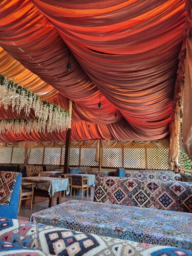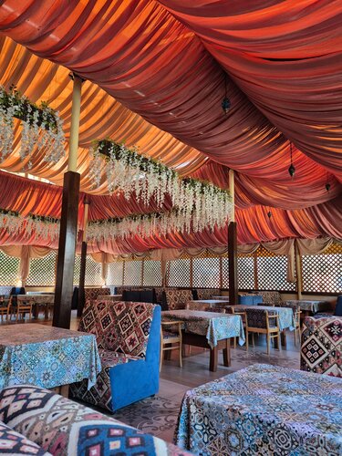 Это очень колоритное место! А как здесь готовят! Очень вкусно! Я тысячу лет ( в моем случае, никогда ) не ела таких вкусных мантов! Замечательная атмосфера, прекрасный персонал! Чистые туалеты! Есть возможность покушать на улице, рядом большая детская площадка. Обязательно зайдите в это прекрасное место!