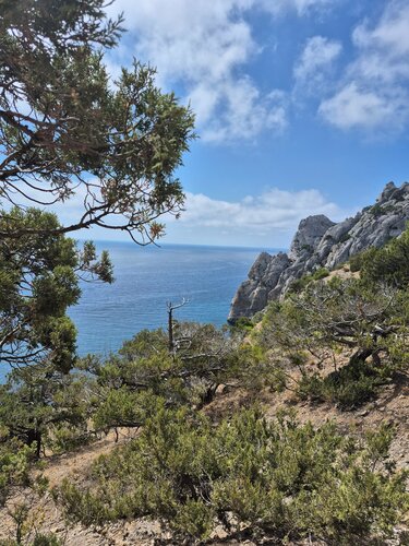 Очень понравилось! Специально приехали с мужем из за этой тропы. Тропа лёгкая, виды очень красивые, плавно переходит в более сложный маршрут Караул-Оба, на прохождение всего пути у нас ушло 8 часов, но мы особо и не торопились, останавливались, отдыхали и шли дальше. Вышли в шесть утра с посёлка Новый Свет, спустились на Царский пляж-искупались, затем опять поднялись в гору на тропу, дальше шли до Весёлого, там опять искупались, немного отдохнули, наняли на берегу катер который доставил нас обратно. Виды наверху очень красивые, мы не пожалели) Минус только один у этого маршрута, нет туалета, точнее был один на тропе Голицына, а потом только куст, если планируете пройти этим маршрутом, выходите с рассветом, берите побольше воды, еду, обувь лучше одеть закрытую с хорошим сцеплением с поверхностью, ну или на худой конец сандалии, что бы нога была зафиксирована, в жару нужен головной убор, и помните, это не Кавказские горы, в которых прохладно в жару! Здесь жар идёт от солнца и от горы , детей брать с собой я бы не рекомендовала, иногда приходилось просто съезжать на пятой точке, потому что прыгать для меня было высоко, карабкаться по камням и корням тоже приходилось