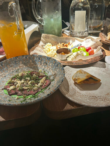 Вчера праздновали День Рождение в этом ресторане. Еда очень вкусная (из блюд хотелось бы отметить сыры, опаленная говядина, кутабы с индейкой, салаты: с гранатом, ягненком), интерьер стильный и очень хорошее обслуживание. Хотелось бы отдельно отметить официанта Акмаль, показал очень хороший сервис несмотря на большую загруженность. Ресторан превзошел все ожидания, уже рекомендую свои знакомым! Прекрасное место😍