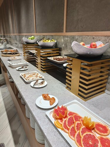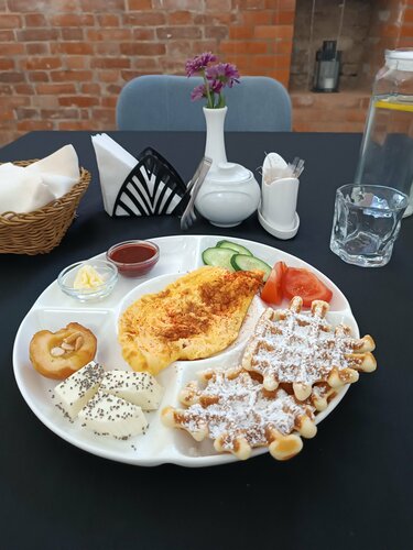 Очень порадовал отель, чистота и порядок. Много интересных деталей интерьера подобранных тонко и со вкусом. Коврик для молебна тоже удивил) Вежливые ребята на ресепшен отеля и ресторана. Локация Топ. На мой взгляды немного перебор с рекламой и всякими меню на столе. Все давно ушло в онлайн. Но в целом некритично) Завтраки комплексные, несколько вариантов. Выбор пал на тот, где Адыгейский сыр ! оказалось , что все разнообразие на одной тарелке менажнице уместилось. Тут тебе сладкие горячие вафли с ароматом ванили и омлет. По мне так не очень соседство) Ребятам сказал!) В остальном отлично