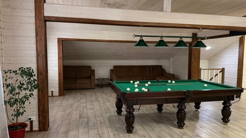 Очень классное место. Снимали дом Беломорье. Дом свежий, в прекрасном состоянии, на первом этаже больная гостиная с обеденным столом человек на 18-20, также баня, хамам, бассейн. На втором этаже большая гостиная с русским бильярдом, настольным теннисом, аэрохоккеем, плюс три комнаты с двуспальными кроватями. Сотрудники очень отзывчивые и приятные.