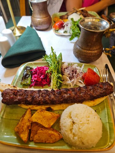 Очень приятное место, всё очень вкусно, обслуживание на высоте. Блюда большие, сытные и вкусные. Закуски тоже очень вкусные. В качестве комплимента получили чай и пахлаву 😋
