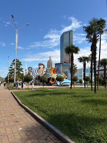 Бежали под дождем вместе с детьми, на море был шторм. Но красота мест восхитила. Маленький Дубай в сердце Грузии.