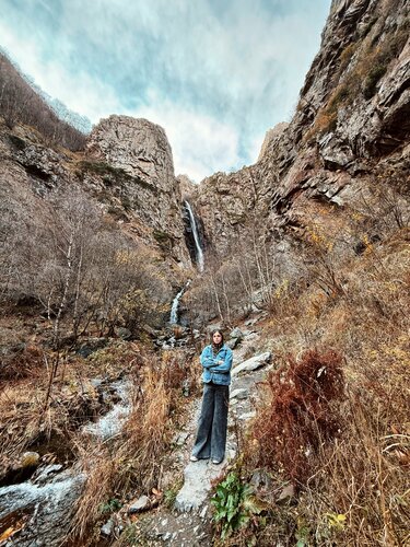 До водопада можно добраться за 25-30 минут пешком примерно. В самом низу есть парковка для авто, 5 лари. Но можно проехать чуть выше, оставить машину на полянках бесплатно. Если у вас внедорожник, то можно подъехать к самой развилке, где дороги уходят на малый и большой водопады. Оттуда идти ещё меньше. На обычных машинах бы не рекомендовала, большие камни. Дорога к большому водопаду идёт через живописный маршрут. Дорога не сказала бы, что сложная, наверное 4/10. Ходили с 7-летним ребёнком, справилась без проблем. Сам водопад высокий, не самый мощный (может, потому что мы были в начале ноября), но атмосфера приятная.