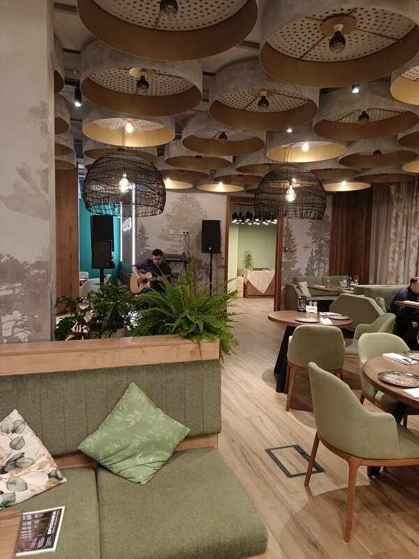 Замечательная атмосфера, очень красивые цвета интерьера и люстры. Кухня хорошая, особенно соусы. Обслуживание на 10+. Отдохнули пару часов, а как будто пару дней. Спасибо за уют.