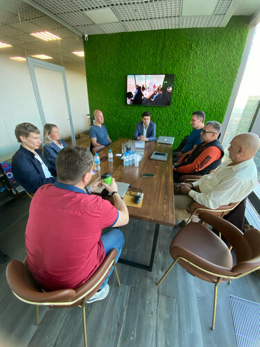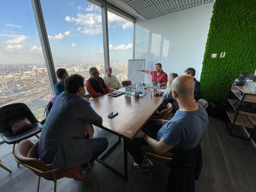 Переговорная на 64-м этаже , уютная, светлая, с прекрасным панорамным видом , кулер с водой в помещении за дверью , по запросу предоставили Филип чарт , спасибо администратору Григорию Не хватило опции чай - кофе. Чайник брали с собой.