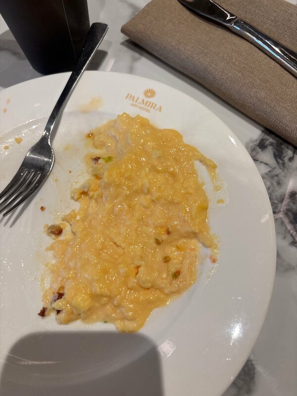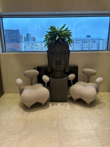 Номера маленькие, ванные комнаты еще меньше. С душем пока разберешься надо целый кубик Рубика сложить. Сантехника вся заляпанная. Отдельный вид искусства это кондиционер в номере, благодаря которому то ты умираешь ночью от духоты, то замерзаешь от ветра, который из него ***, при том, что настройки ты не меняешь. В итоге я заработала себе под утро кашель. Вид из номера был просто поле, единственное окно открыть в номере невозможно, потому что режима форточки у него нет и в него фигачит Роза ветров. Отдали за номер и отдых 28.000 за сутки. Номер расстроил, надеялись, что спа компенсирует. Пришли в спа: бассейны крошечные, в хаммаме сидеть не возможно. В центре 1 лежак и по бокам 2 треугольных непонятных сиденья, в которых даже 1му сидеть невозможно. В римской бане воняло канализацией. Пошли в сауну, у мужа под ногой просто пополам разломилась доска, хорошо, что он хоть на гвозди не упал при этом. Доски не закреплены и толи из сушены, толи прогнили. Последняя надежда была на завтрак. Но тоже увы. Выпечка не вкусная, с каким-то привкусом. Чиа с привкусом водопроводной воды. Скрембл из яиц был похож на какие-то сопли. В итоге ели фрукты, овощи и драники. К нам на завтрак хотели приехать друзья, хорошо, что не приехали. 2500 за завтрак на 1 это явно того не стоит. Зато по отелю куча концептуальных, не самых удобных кресел и стульев, на которые можно только смотреть. С такими ожиданиям были к отдыху и с таким расстройством уехали из гостиницы. Больше ни ногой.