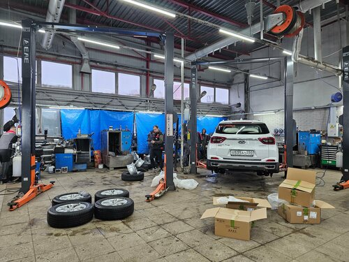Делал первую осеннюю переобувку на новом автомобиле. Приём по предварительной записи 🚗 Собрали 4 колеса из новых дисков, новой резины и датчиков давления. Уровень обслуживания практически автосалонный, не типичный автосервис. Никаких проблем с присутствием в ремзоне. Персонала много, работают молниеносно. Засечки по времени нет - по завершении работ я свободно минут 20 на подъёмнике делал свои дела. Мастер очень отзывчивый. К сожалению, объём работ оговаривается не сразу, а по ходу дела. Неспециалисту сориентироваться будет сложно, а это чревато значительной переплатой. Будьте внимательны! Мне сразу заявили, что мою новую резину лучше выкинуть и купить у них новую. В смету на кассе также заложили неоказанные услуги - пришлось вычёркивать. На вопрос о свежести датчиков давления ответили, что это узнать невозможно (позже увидел, что дата производства выбита на изделии). Друзья рассказывают про аналогичный опыт 🤷