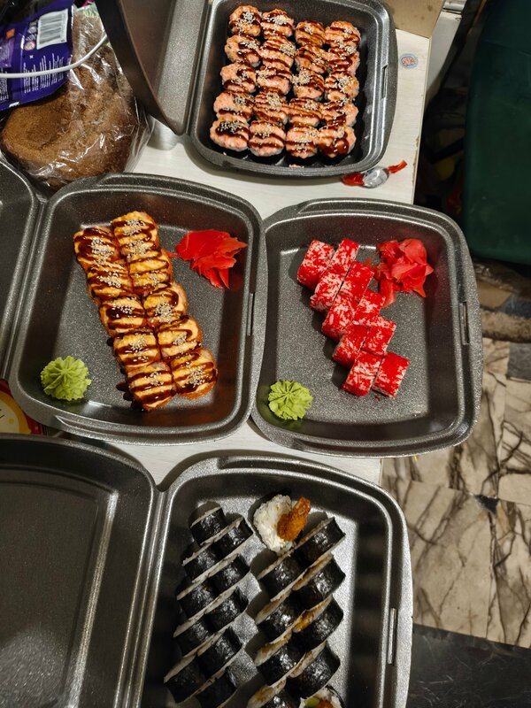 Частенько заказываем роллы 🍱 быстрое приготовление, и всегда свежее, ребёнок в восторге , периодически за один вечер не съедаем , и остаётся на следующий день, вкус тот же , рис не становится дубовым , всё нравится, персонал приветливый, одно из любимых кафе, а пицца четыре сыра 🧀 вообще отдельный вид искусства, все вкусовые рецепторы летают 🚀