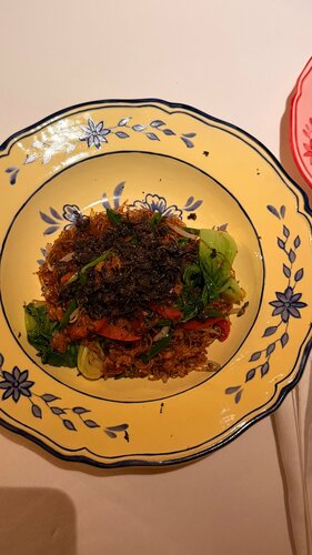 Десерты необычные и очень вкусные, закуски тоже. Но лапша просто ужас! Склизская, жирная, одновременно и перченая, и пресная. Никто из нас не доел свою порцию, да даже особо и не начали. Официантка это заметила, подошла и просто сказала, что мы не шарим в китайской кухне 🤷‍♀️