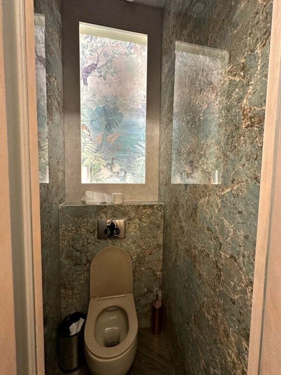 Великолепно всё. Запрашиваемый столик у окна. Музыка. Официант Виолетта. Подача. Оформление. Туалеты.