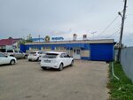 Единственный в своём районе, довольно обширный выбор, цены соответствуют качеству, кассиры приветливые, есть парковка большая, работает без обедов и перерывов.