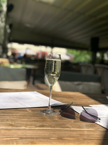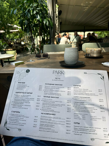Милое место, на территории парка , можно прогуляться , после обеда , есть платная парковка , веранда и основной зал внутри , блюда разнообразные , музыка, винная карта были в воскресенье народу к обеду много уже , некотрые блюда , к сожалению которые хотели попробовать отсутствовали(