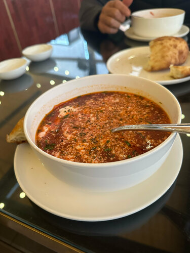 Есть прекрасная веранда, работает пока тепло ,очень уютная , есть зона для кальяна … , рядом парковка , теперь платная- 100 р за час наземная и подземная . Сам основной ресторан ( в холодное время ) находитс на 3 эт . Меню разнообразное оченьвкусное, есть уютные диванчики, пледы и подушечки , что надо ещё после трудового дня ? )) ооооочень вкусный борщ , и шашлык из телятины - рекомендую🔥 есть детская игровая