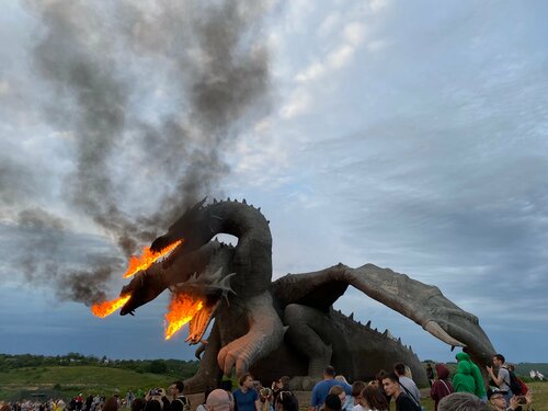 Были семьей в кемпинге с 10 по 12 июня 2023 года. Остались в восторге! Не ленюсь написать отзыв, хотя обычно не делаю этого. Из Москвы доехали за 5 часов с пробками, но это того стоило. Кемпинг отличный, есть душевые с горячей водой. Умывальники только с холодной, было 3 дня +15 днем, поэтому помыться на улице было холодно и руки мыть тоже холодно, но то что есть санузел-это уже огромный плюс. Туалеты относительно чистые, чтобы комфортно их посетить, надо знать когда будут убирать. Есть туалетная бумага и жидкое мыло- это супер! Стоянка машин отдельно от палаток, что тоже плюс, т.к. дети бегают, ползают по лужайкам и взрослые за них не переживают. Вся территория обработана от клещей. На каждом месте есть подиум деревянный, что хорошо, потому что спать не на холодной земле в палатке. Сам парк мы обошли за 2 дня. Отличные локации, все чисто. Держать 5га в таком состоянии-респект хозяйке 👌 Прогулки с ламами- любовь детей! Есть сплав на байдарках, комфортный для первого раза. Конные прогулки. Чистые, ухоженные животные, все здоровые, глаз радуется. Обычно очень переживаем за животных в зоопарках, а тут за них прям радовались! Персонал везде приветливый. Сервис как в Европе!!! В ресторане вкусно, доступно, красиво! Горыныч собирает вечерами тысячи людей! Пляж шикарен! В общем вернёмся снова и снова!